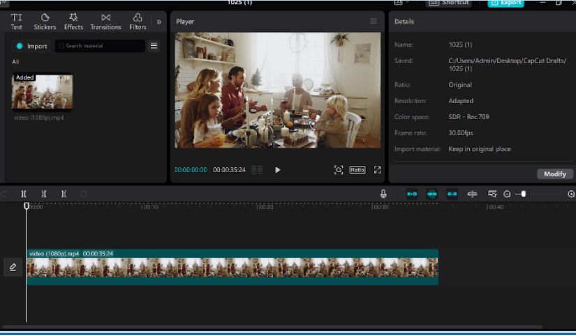Start by uploading your video footage, complete with visual effects, into CapCut’s desktop editor. You can drag and drop your file directly onto the timeline, where you can begin adding audio elements.
